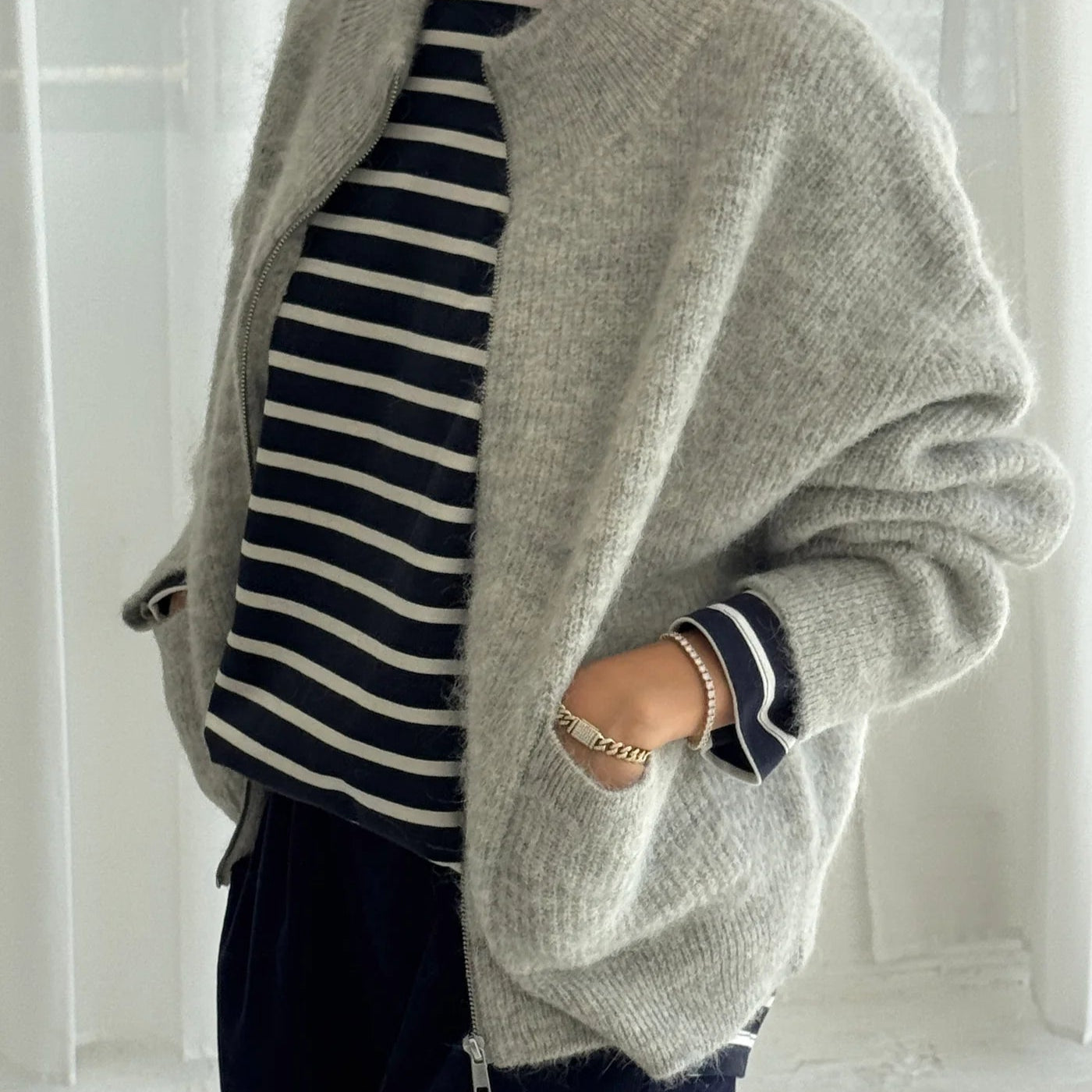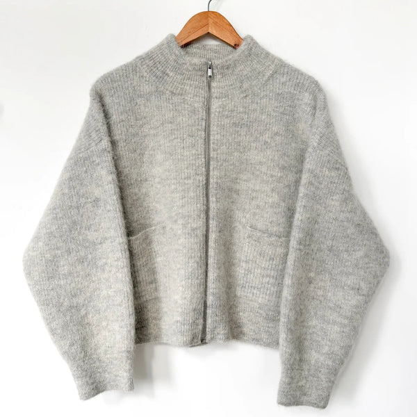 An elevated spin on a classic cozy sweater, the Alpaca Zip Front Jacket is crafted from a soft wool blend with a luxe hand feel. Designed with a mock neck, front pockets, and an easy zip closure, it’s the perfect layer for both relaxed days and more polished looks.