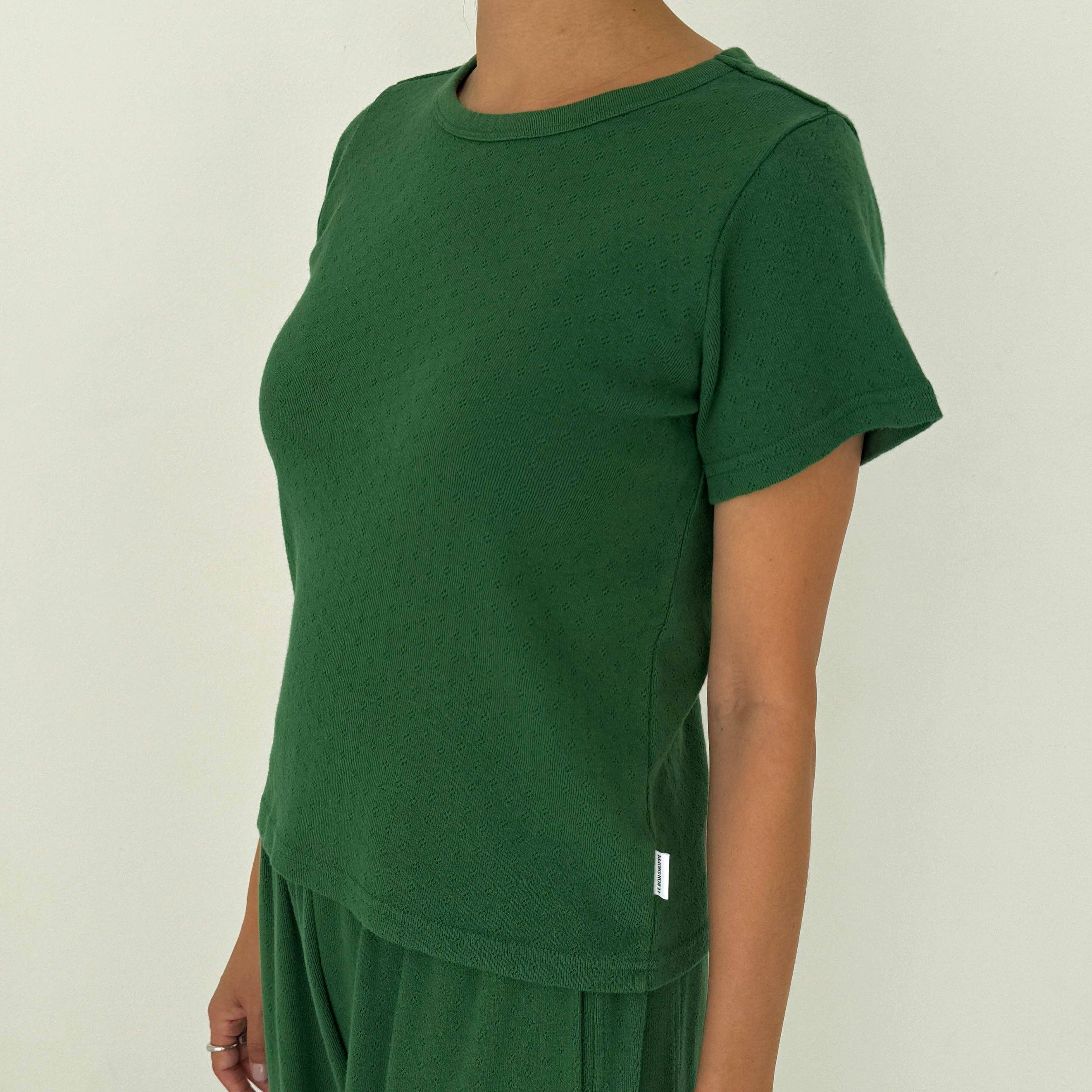 A dreamy take on the everyday tee, the Pointelle Babe Tee is made from ultra-soft cotton pointelle jersey that is breathable and just the right weight for an ideal drape. Designed with a timeless crew neckline, classic short sleeves, and a subtly cropped length. Feminine yet effortless, it's a versatile staple designed to move with you through every season.