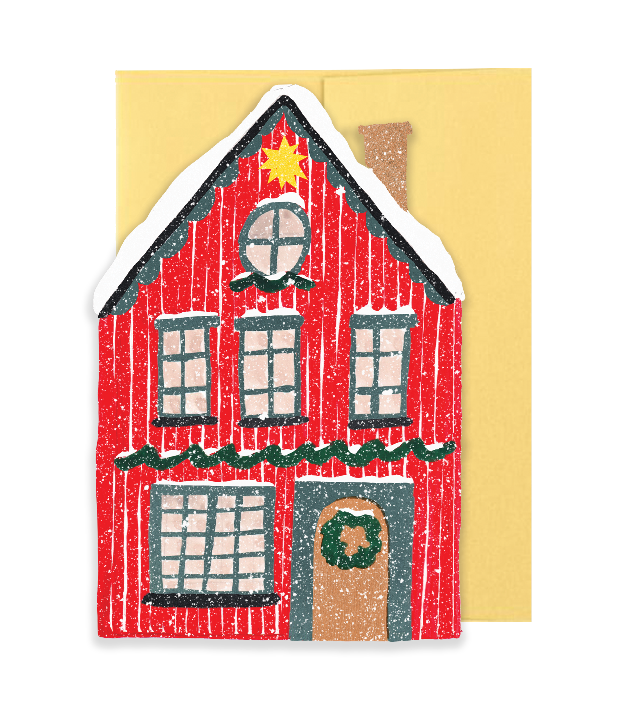 The coziest little red cottage, all dressed up for the holidays, is inspired by nostalgic village scenes and Nordic charm.