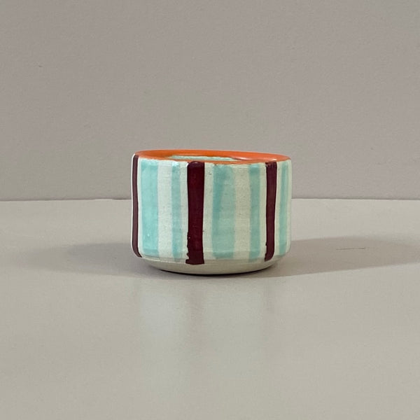 A sweet lil striped ceramic cup, ideal for serving up condiments or spices along with a tasty meal.