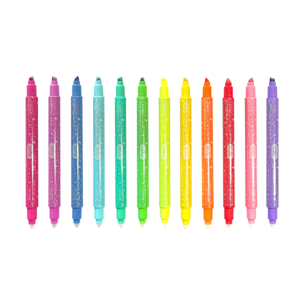 A set of 12 glitter markers in sweet, shimmery colors