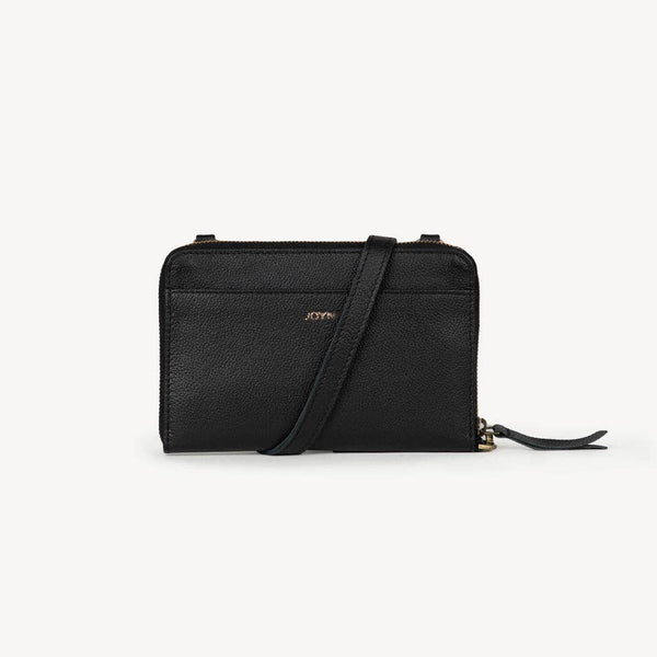 The Crossbody Wallet combines minimal, fine design with practical versatility. It includes a crossbody strap for life on the go and a wristlet strap as an elegant stand-alone piece. Handcrafted from recycled leather with a well-organized, cotton-lined interior featuring six card slots, 2 partitions and 1 zipper pocket.