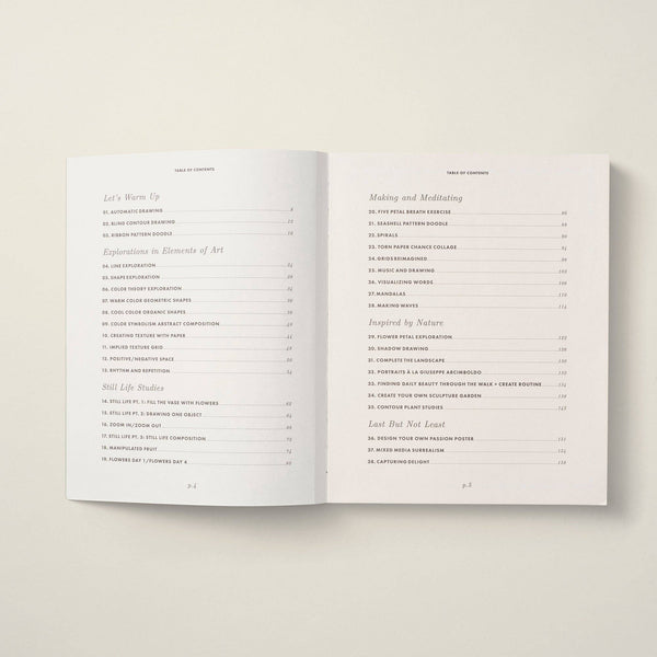 The guided sketchbook is about building your creative thinking skills - not your technical skills. It's the ultimate companion for both budding creators and seasoned artists alike. This guided sketchbook features 38 artist-inspired prompts for all skill levels to create a daily creative practice.