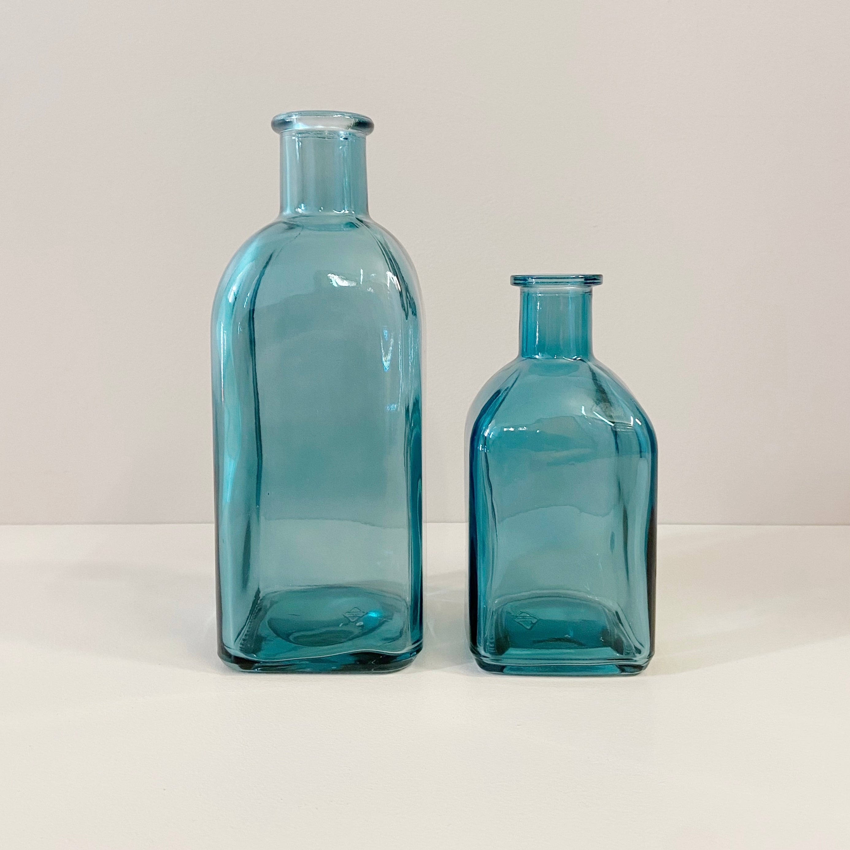 Beautiful blue hand blown glass bud vases in two sizes - a perfect accent for a shelf or desk with a lil bundle of your favorite fresh or dried flowers.