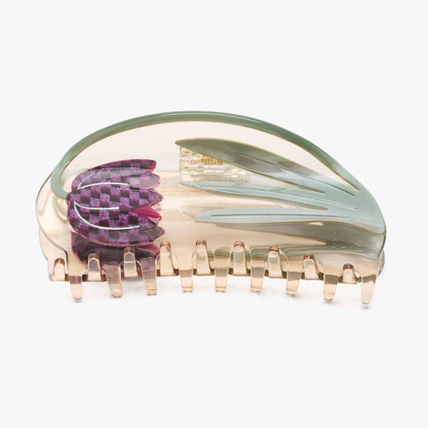 The Eden collection: Bleeding Heart Long Claw, Fritillaria Long Claw, Viola Claw, and Pansy French Barrette are the flowers of our dreams. Featuring high quality cellulose acetate materials, each unique design is meticulously assembled by hand to create a durable and timeless hair accessory. Form and function are carefully considered, ensuring your claw is as wearable as it is beautiful.