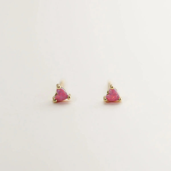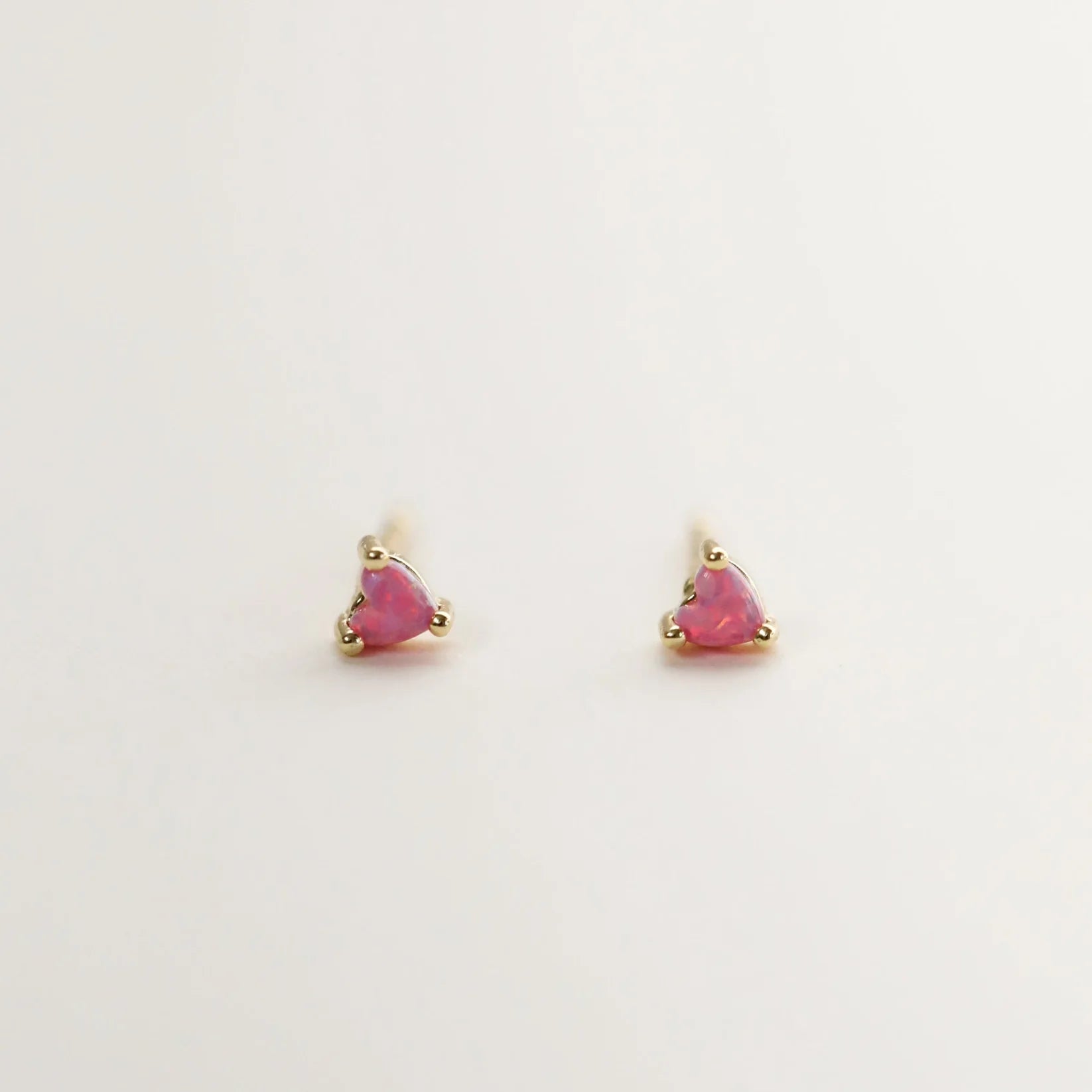 The perfect pop of color. These tiny, heart-shaped opals are set in a three-prong stud and can be worn perfectly alone or in a stack.